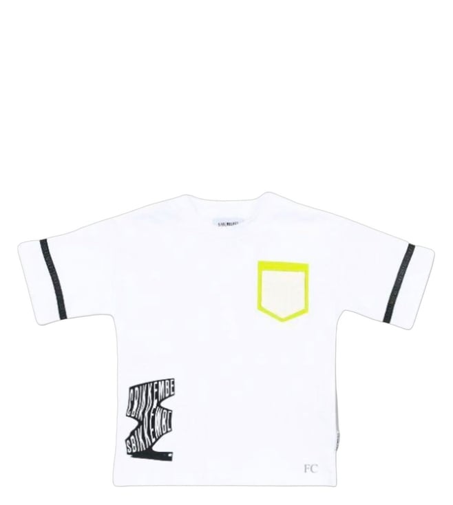 Elevate your little boys casual wardrobe with the Bikkembergs White Printed Comfort Fit T-Shirt. Made from soft cotton, this stylish tee features a unique neon pocket design that adds a pop of color to any outfit. The comfortable fit ensures all-day wearability, while the high-quality construction guarantees durability. Perfect for playdates, school, or just hanging out, this t-shirt is a versatile and trendy addition to any young boys closet. Add a touch of fun and fashion to his everyday look with this must-have piece.