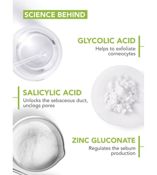 Aqua/Water/Eau, Caprylyl/Capryl Glucoside, Propanediol, Glycerin, Zinc Gluconate, Salicylic Acid, Glycolic Acid, Coco-Glucoside, Glyceryl Oleate, Cellulose Gum, Sodium Hydroxide, Citric Acid, Fragrance (Perfume), Inulin, Xanthan Gum, Mannitol, Sodium Citrate, Xylitol, Cellulose, Fructose, Glucose, Rhamnosis, Sodium Metabisulphite, Fructooligosaccharides, Tocopherol, Hydrogenated Palm Glycerides Citrate