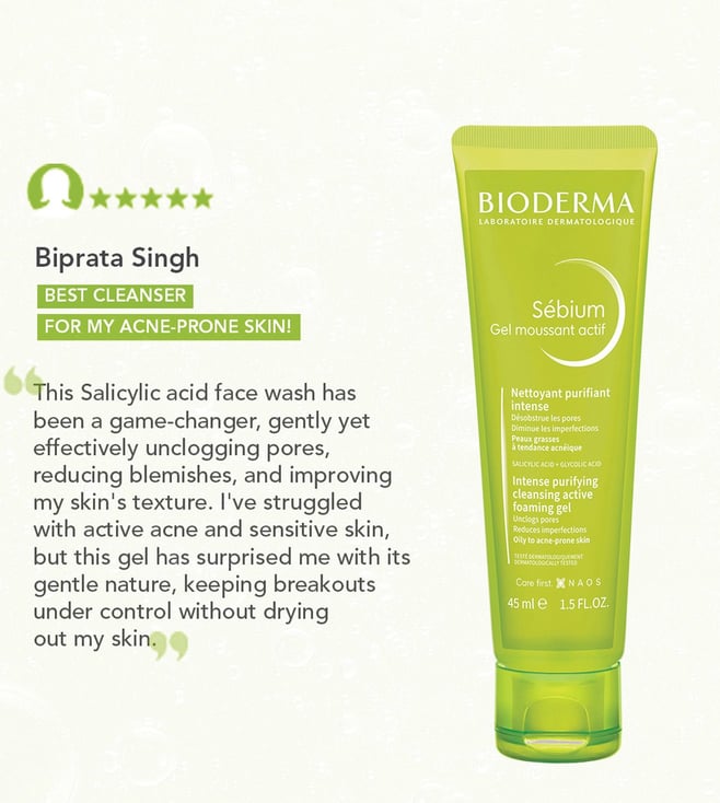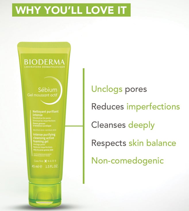 BIODERMA Sebium Intense Purifying Cleansing Active Foaming Gel is specially formulated for acne-prone skin, to act on both the causes and the consequences of these imperfections upon cleansing. The combination of salicylic acid and glycolic acid helps unclog pores, reduce blemishes and refine skin texture. Zinc gluconate regulates shine. Caprylyl-capryl-glucoside soap- and sulphate-free gentle cleansing base cleanses while respecting the skins balance.An optimal ph of 4.5 which provides the best compromise between the efficacy of acids and excellent tolerance for the skin.