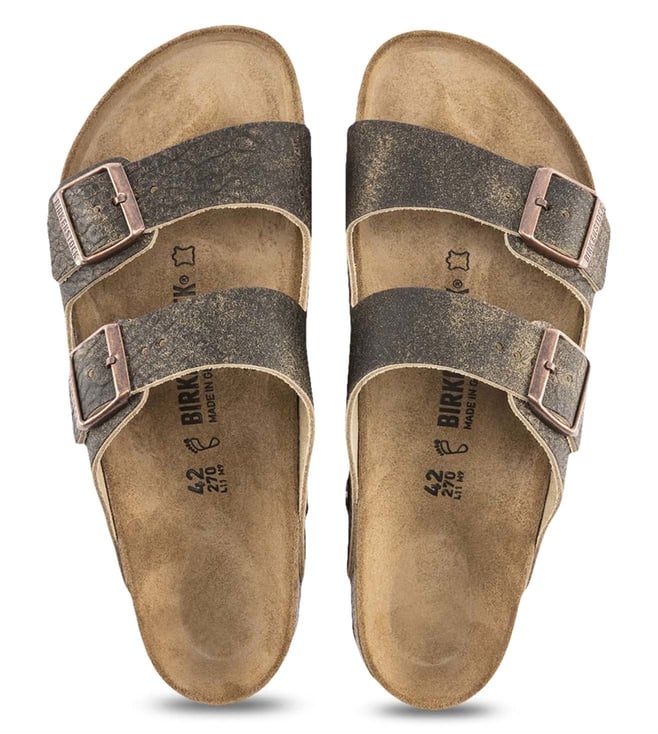 The Birkenstock Arizona regular pair is a genuine classic that has been delighting men with its timeless design for decades. This version in a vintage look is for anyone who wants their footwear to have a natural patina from the outset. This pair is the result of the elaborate treatment that makes it soft, comfortable and authentic as if you had been wearing it for 30 years. The upper is made from high-quality, soft natural leather. It has anatomically shaped cork-latex footbed, suede footbed lining and EVA sole. The pair showcases a vintage brown hue that is sure to impress the onlookers.