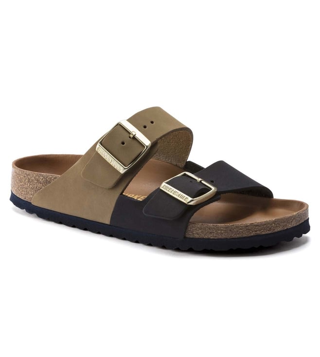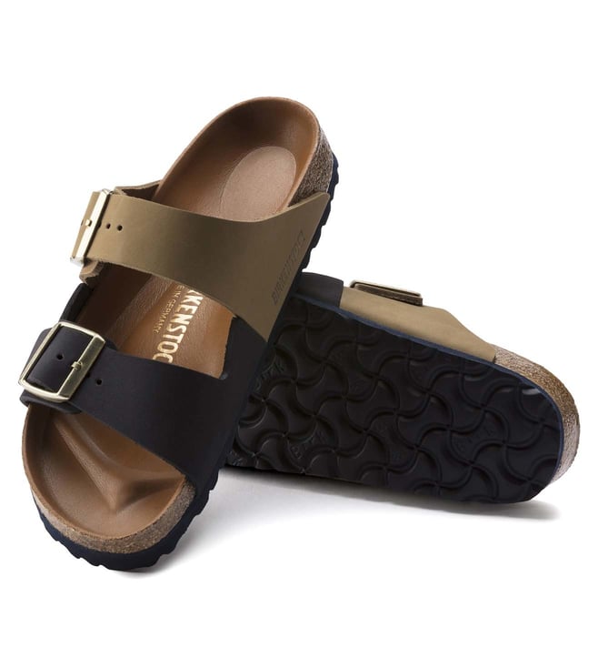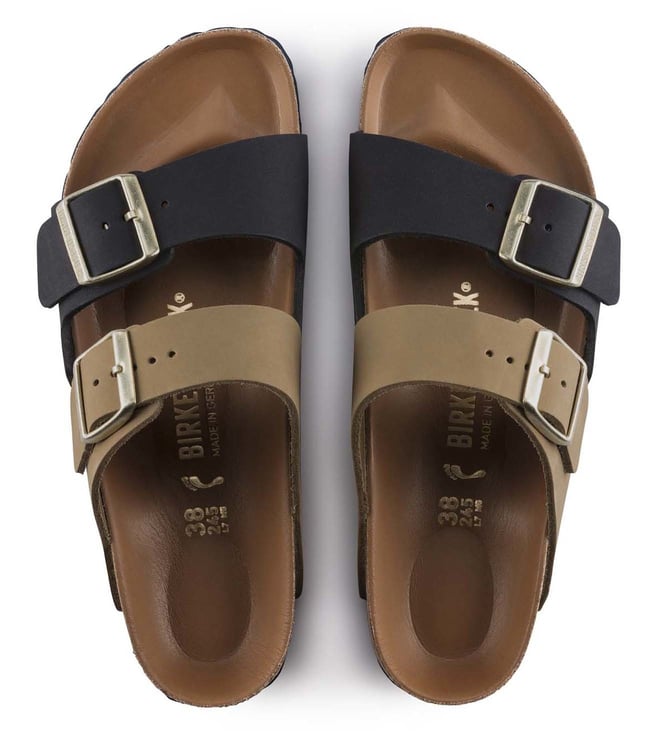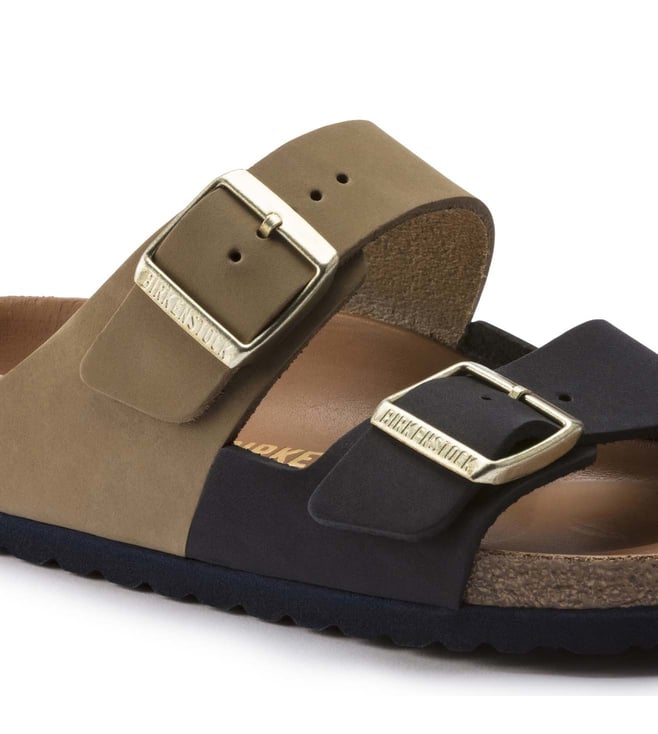 The classic Arizona from Birkenstock gets a fresh update with a bold colour block design. The two-strap slides feature a two tone upper, as well as a tonal footbed and buckles for a sleek and refined look.
