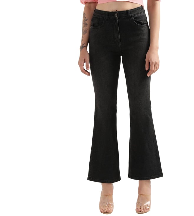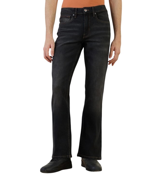 Washed Black Cotton Straight Fit Mid Rise Jeans