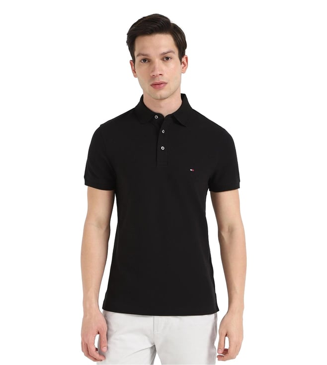 Black Cotton Slim Fit Polo T-Shirt