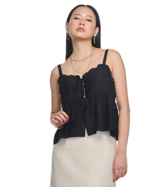 Black Frill Ribbon Bustier Regular Fit Bustier
