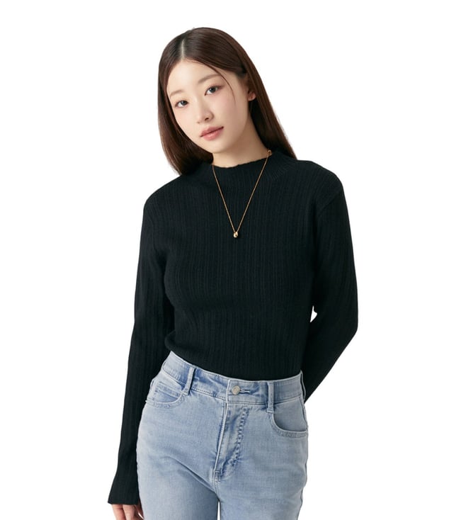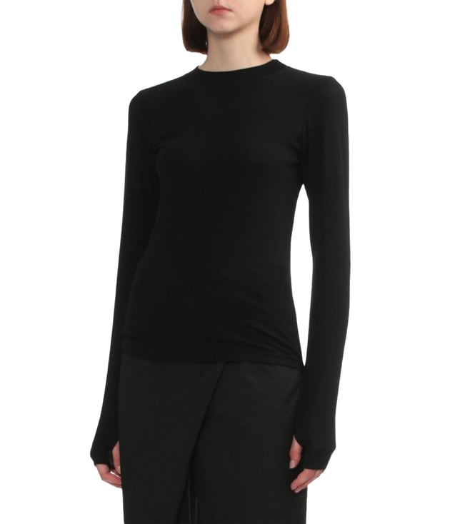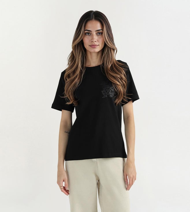 Women Black Solid Crew Neck Pure Cotton T-Shirt