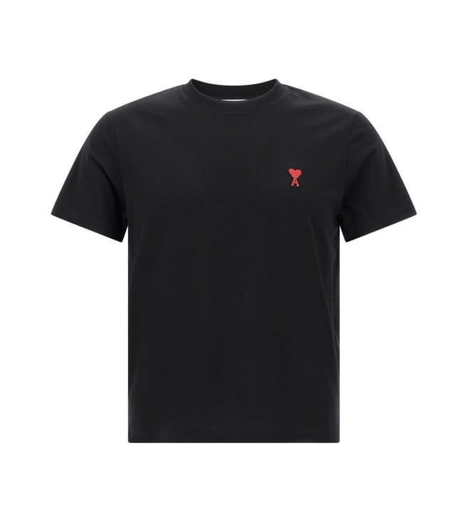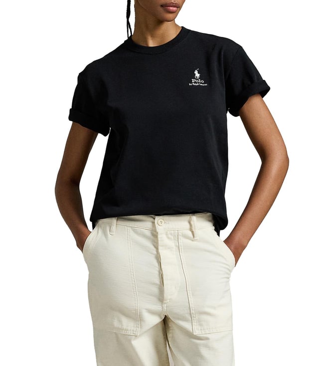 Black Cotton Regular Fit Logo Printed T-Shirt