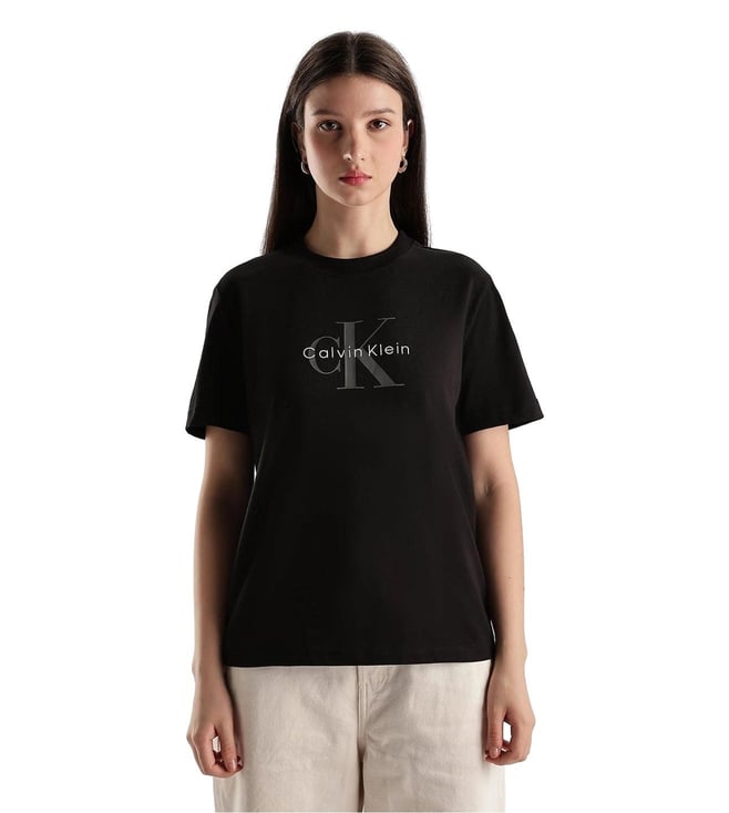 Black Cotton Slim Fit Logo Printed T-Shirt