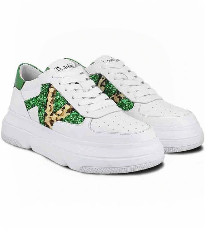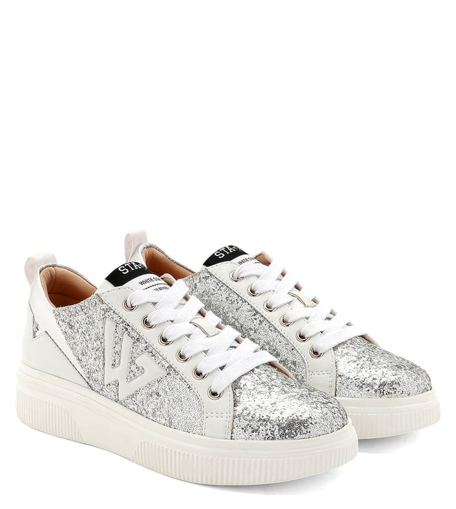 Whitesta Ivory White Beige Pink Giliter Suede Leather Sneakers