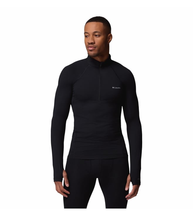 Men Black OmniHeat Reflective Midweight Stretch Long Sleeve Half Zip Thermal Top