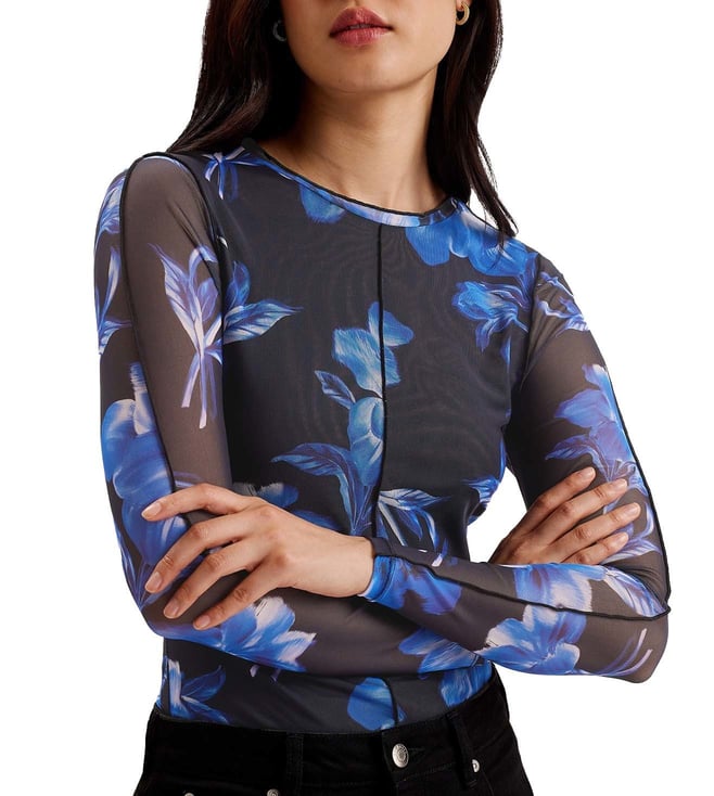 Ted-Baker Blue Dekotha Long Sleeve Printed Floral Top