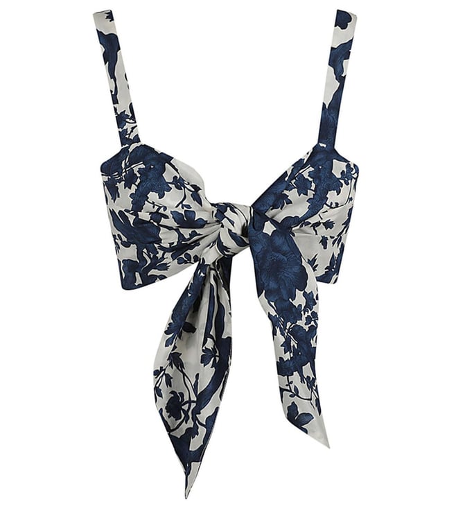 Blue Flower Print Flower Skinny Fit Crop Top