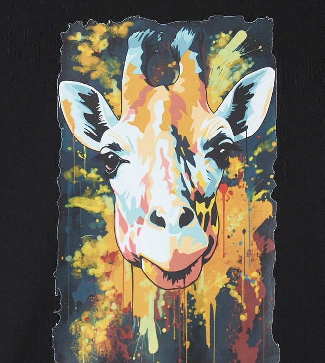 Blue Giraffe Boys Black Regular Fit Graphic Printed T-Shirt