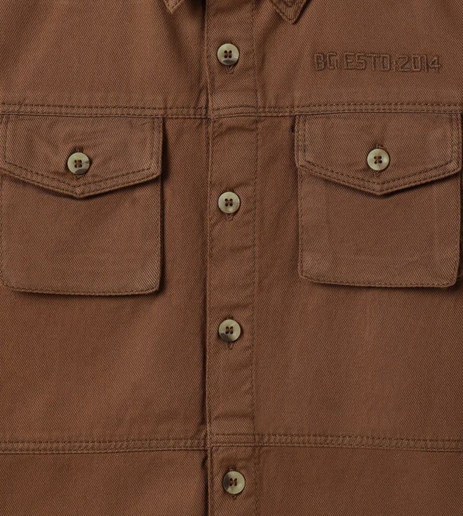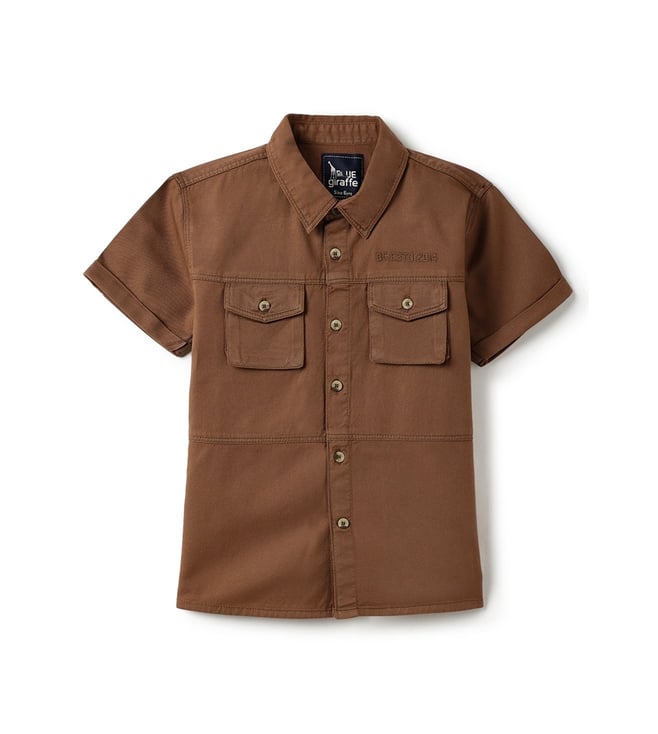Blue Giraffe Boys Brown Regular Fit Shirt