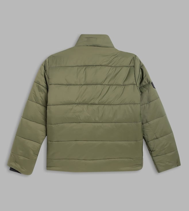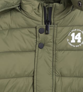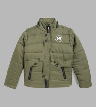 Brave the chill in this bold green puffer jacket. Its regular fit and full sleeves offer comfort, while the hood and zipper/snap closure keep the cold at bay. Made from durable polyester, it's perfect for boys who love adventure.