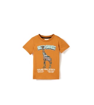 Blue Giraffe Boys Mustard Regular Fit Graphic Printed T-Shirt