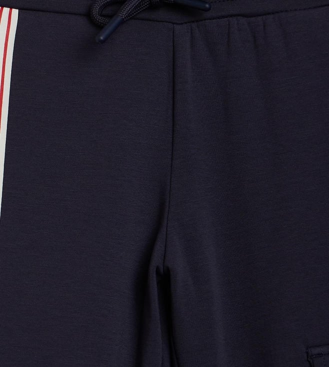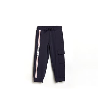 This trendy and sporty edge navy blue sweatpants made up of 70% Cotton, 25% Terry and 5% Spendex will make your kid look outstanding. It features a stretchable fabric and eye-catchy graphic print while making it comfortable and stylish at the same time. It's a perfect pick for everyday wear and casual outing