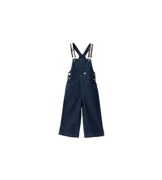 Blue Giraffe Girl Navy Blue Solid Regular Fit Dungaree