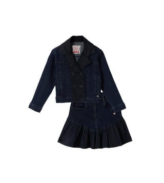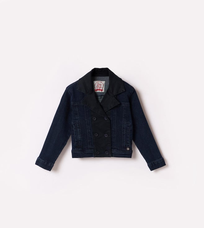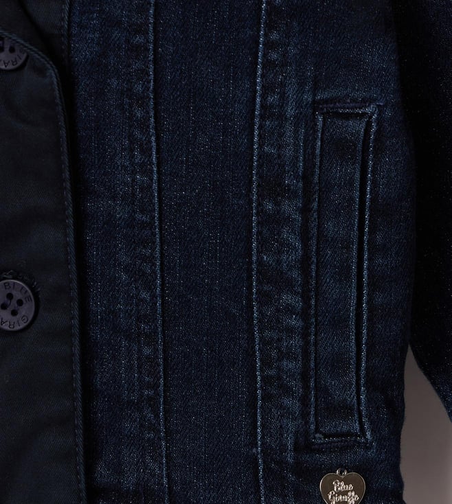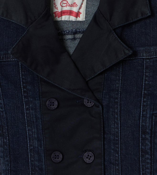 Blue Giraffe Girl Navy Blue Solid Regular Fit Jacket