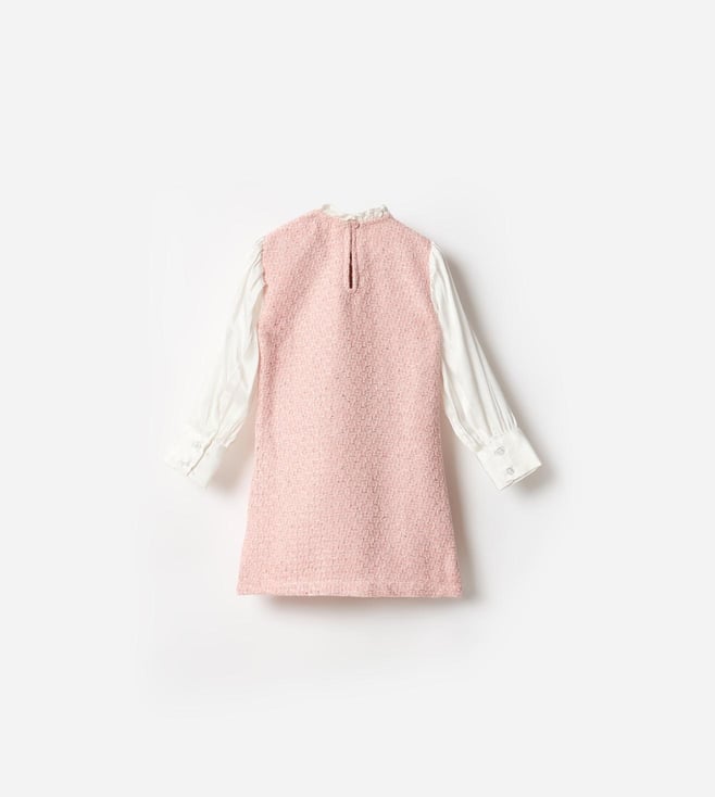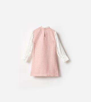 Embrace the charm of elegance with this delightful pink dress, tailored in a regular fit that promises comfort and style. Crafted from 100% polyester, its Textured pattern adds a touch of sophistication, making it perfect for any occasion. The long sleeves offer a graceful silhouette, while the round neck provides a classic touch. Ideal for the modern girl who loves to blend tradition with contemporary flair, this dress is a vibrant addition to any wardrobe, radiating confidence and poise.