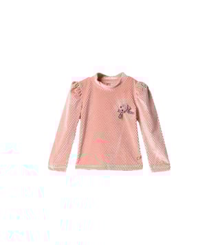 Blue Giraffe Girl Pink Textured Regular Fit Top