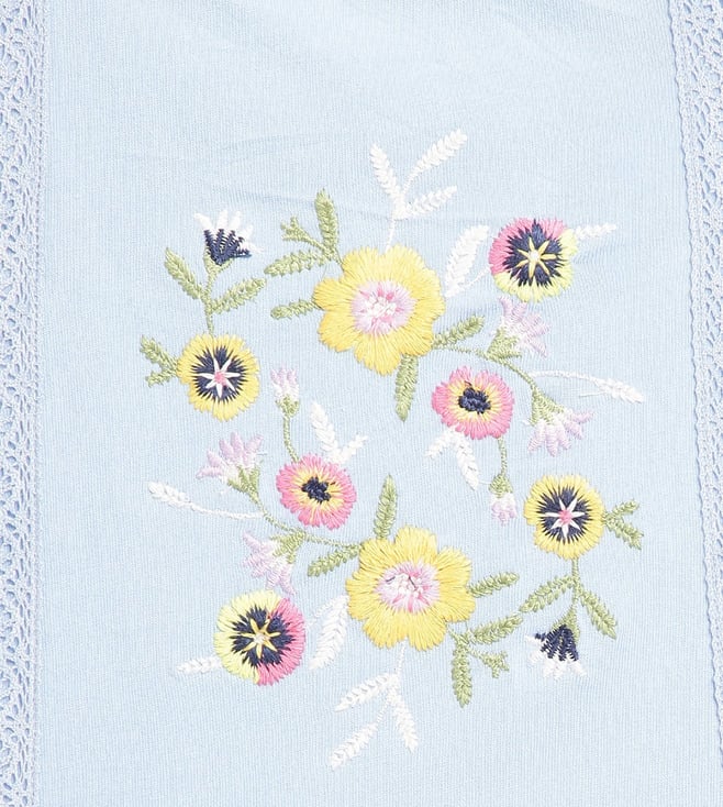 Blue Giraffe Girls Blue Cotton Embroidered Top
