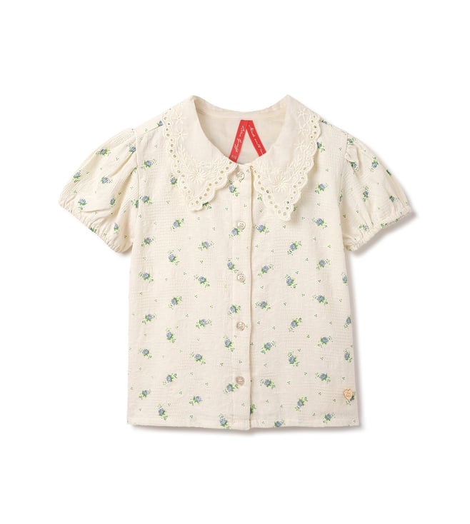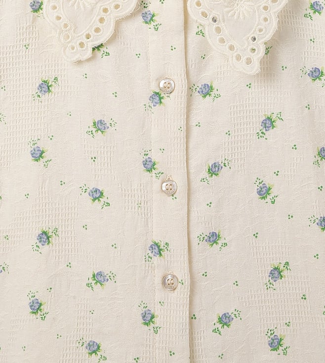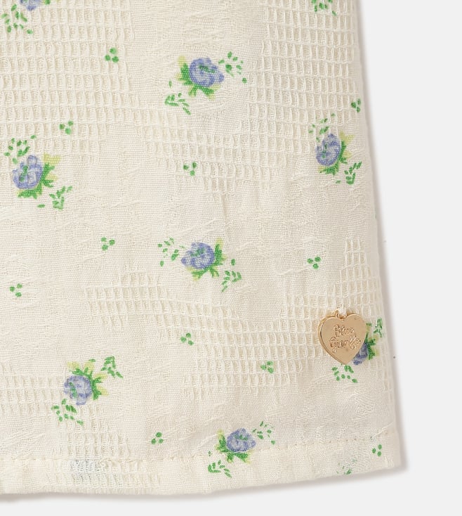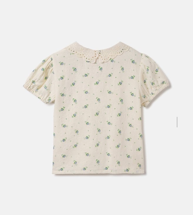 Blue Giraffe Girls Cream Pure Cotton Print Top