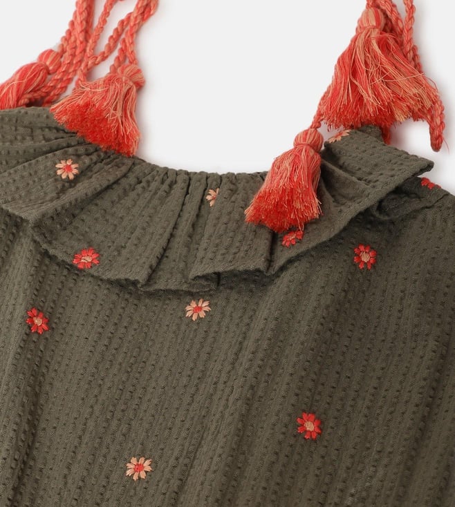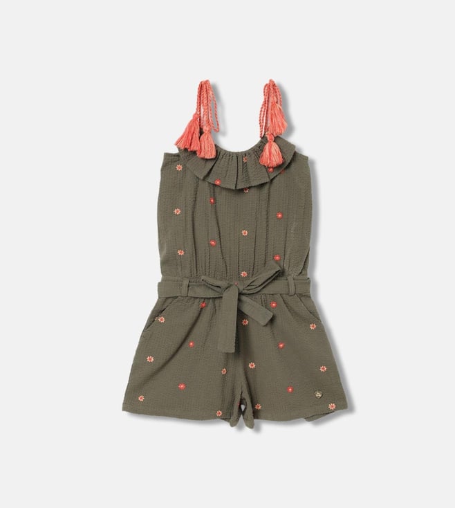 Blue Giraffe Girls Green Cotton Printed Playsuit