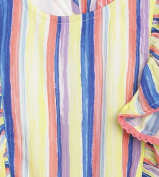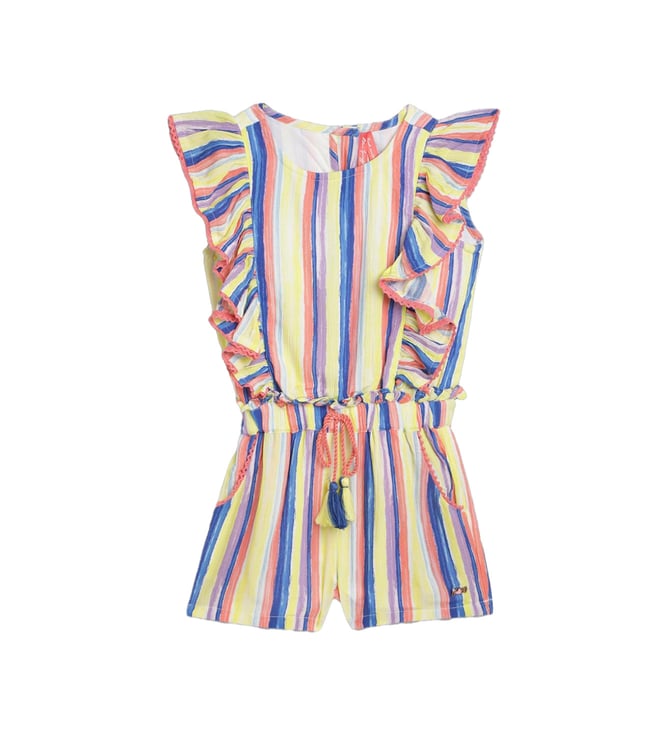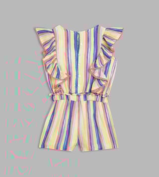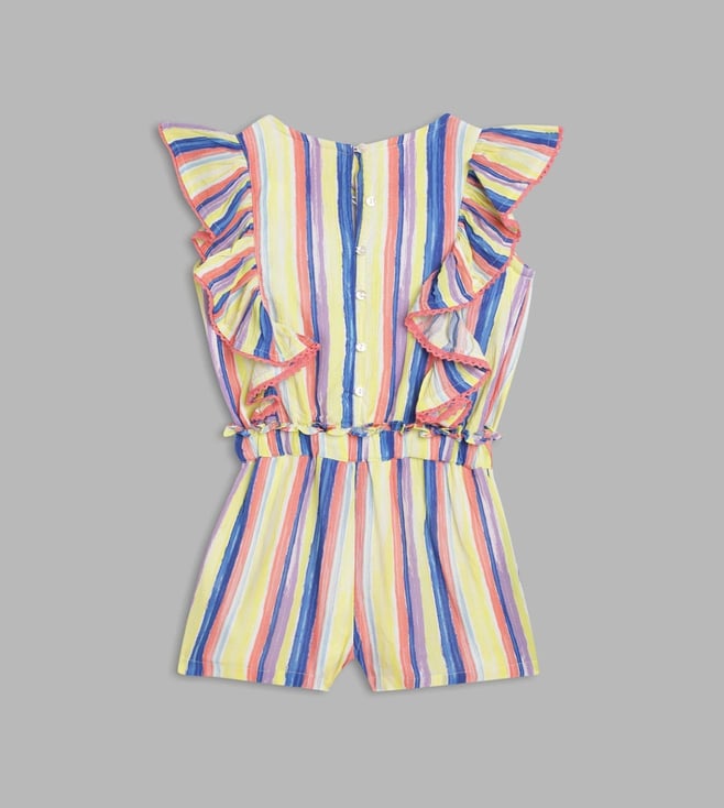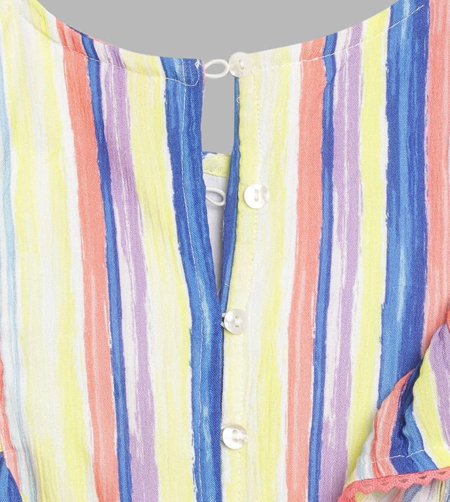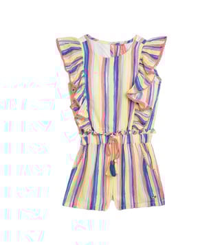 Blue Giraffe Girls Multi Cotton Striped Playsuit