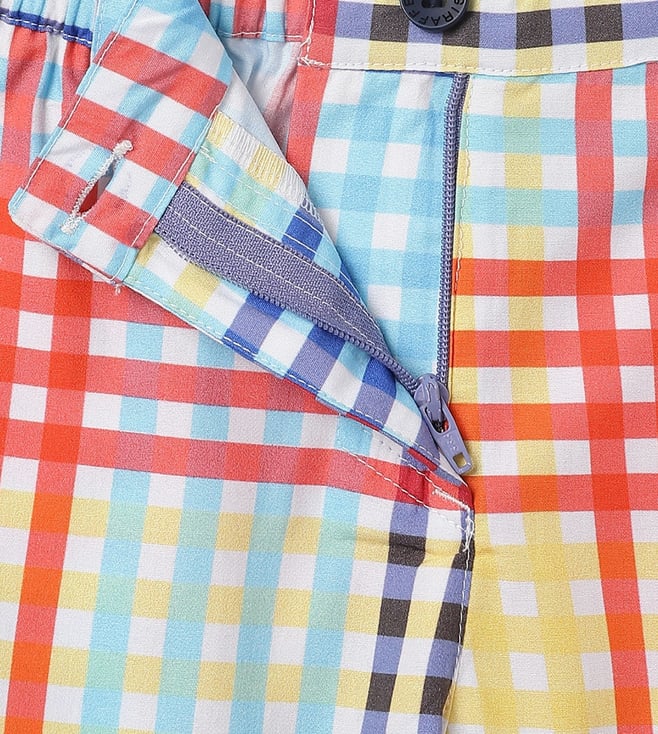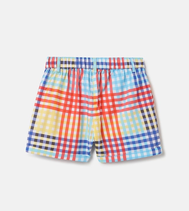 Blue Giraffe Girls Multi Pure Cotton Checks Shorts