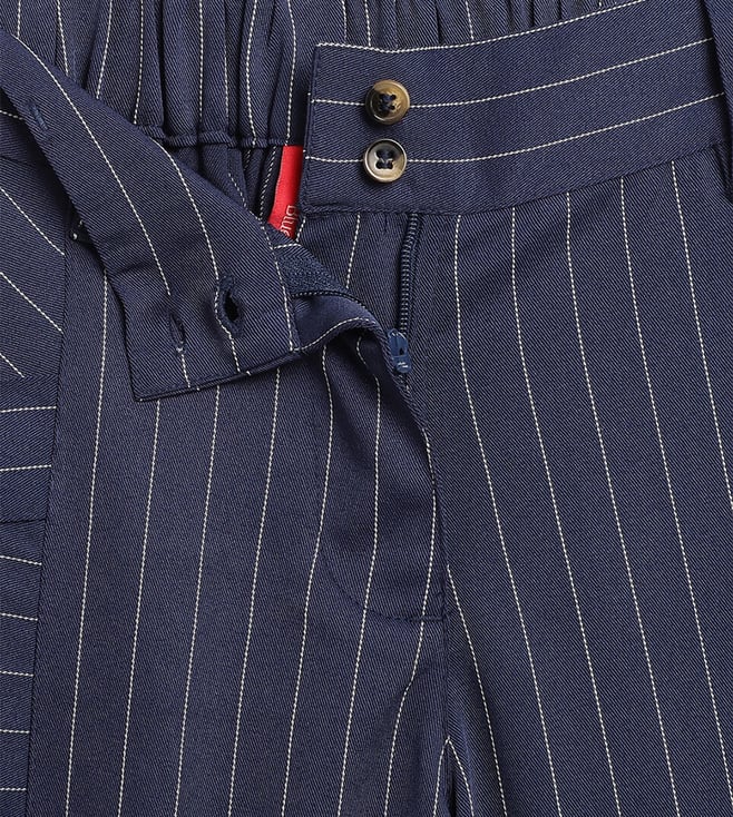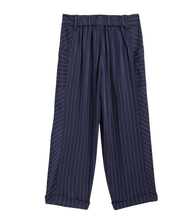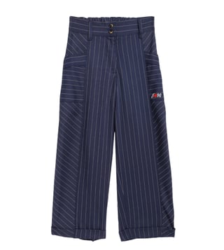 Blue Giraffe Girls Navy Blue Striped Loose Fit Trousers
