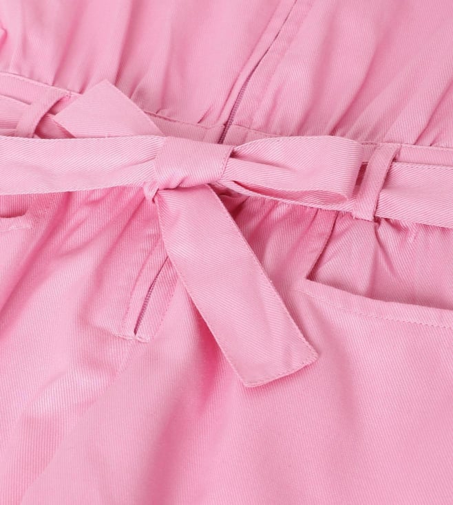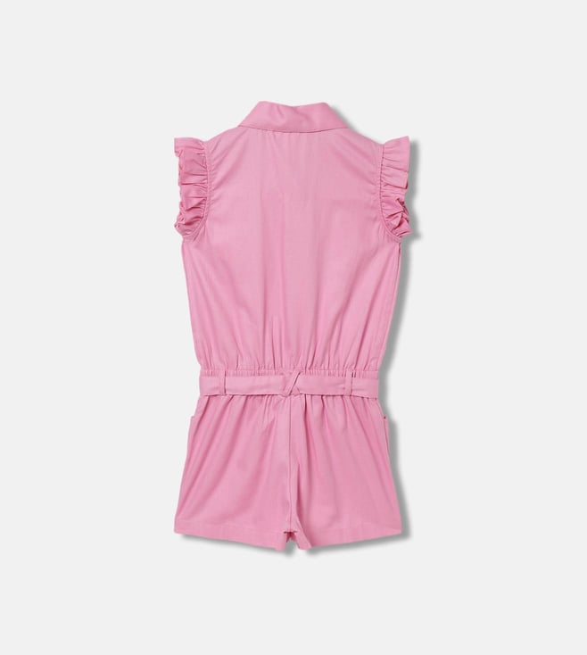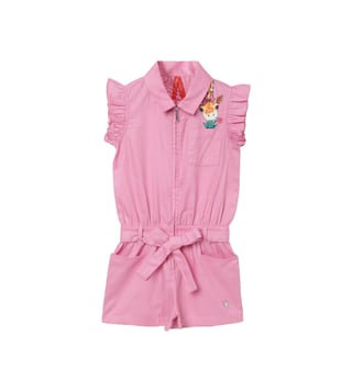 Introducing our delightful lightweight cotton twill playsuit in a charming pink hue, designed for the playful spirit of young girls. This fit and flare silhouette, crafted from pure cotton, ensures comfort and breathability for all-day wear. The solid pattern is elegantly complemented by ruffle sleeves and a classic shirt collar, adding a touch of sophistication. With a convenient zipper closure, dressing is a breeze. Perfect for any occasion, this playsuit combines style and ease, making it a must-have in her wardrobe.