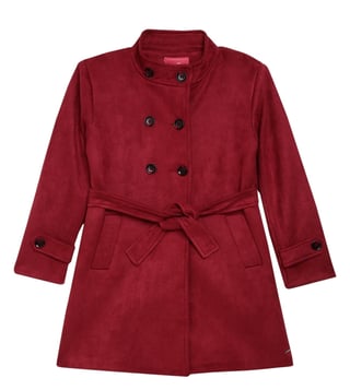 Blue Giraffe Kids Maroon Regular Fit Overcoat With Belt