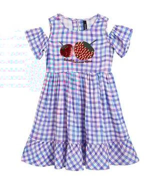 Brighten up your little one's wardrobe with this charming multicolor checked dress. Featuring a flattering fit and a flared silhouette, this dress is crafted from gentle fabric for the desired comfort. The pull-on closure ensures easy dressing, perfect for a playful day out or a festive occasion.