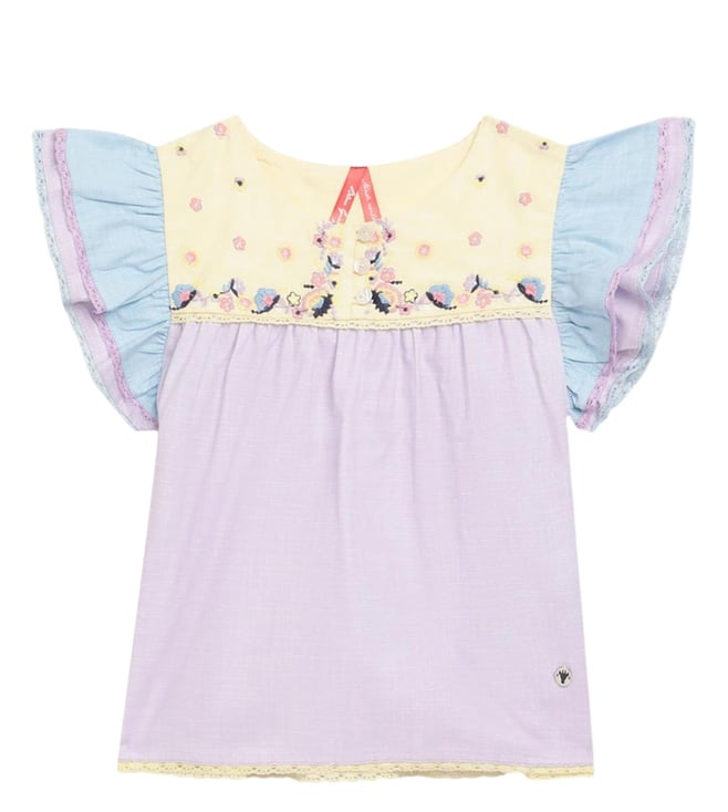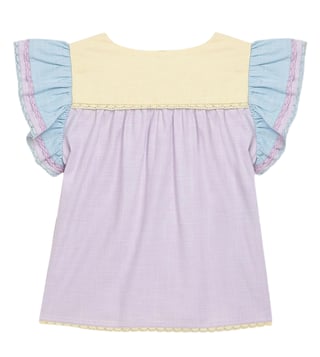 Add a pop of color to your little one's closet with this eye-catching color-blocked top. Designed for playful fashionistas, this top boasts a pretty neck and a convenient button closure. Crafted from breezy fabric, it guarantees comfort throughout the day. The easy fit flatters every silhouette, while the playful multi-color design injects a sense of fun and energy into the ensemble.