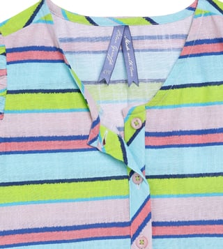 Discover the perfect blend of style and comfort with a multicolored striped top for little ones. Featuring a chic neck, pretty sleeves, and convenient button closure, this effortless top is crafted from gentle fabric, ensuring all-day comfort. Tailored to perfection, it adds a splash of fun to any outfit.
