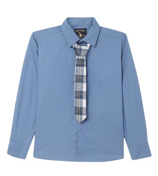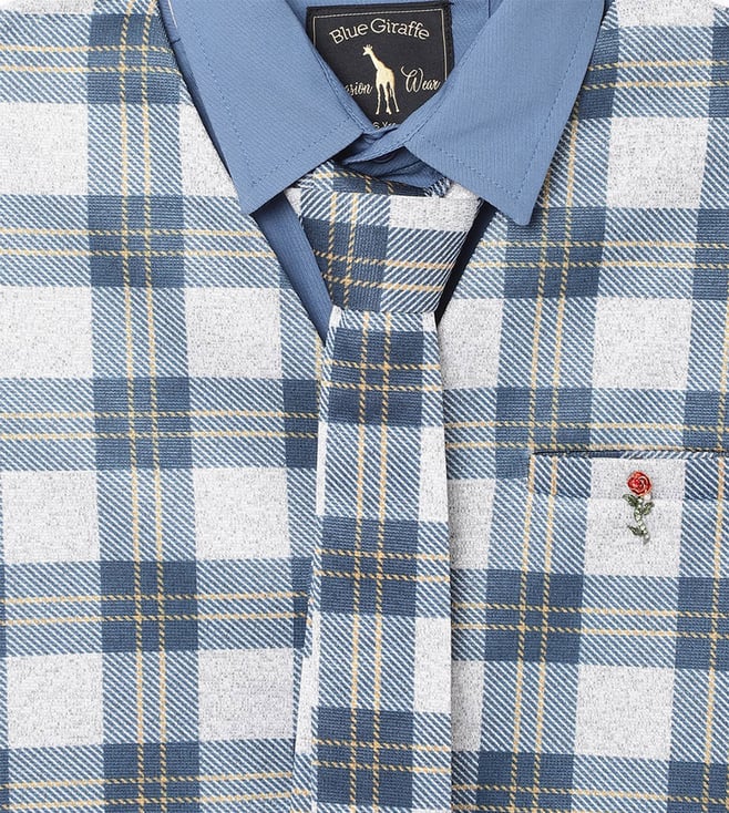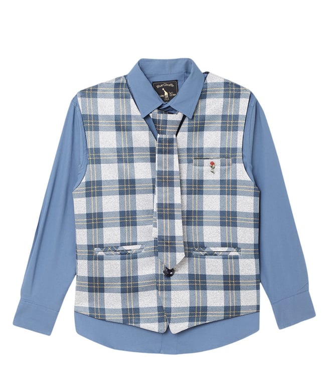 Blue Giraffe Kids Multicolor Fashion Checked Regular Fit Waistcoat & Shirt With Tie