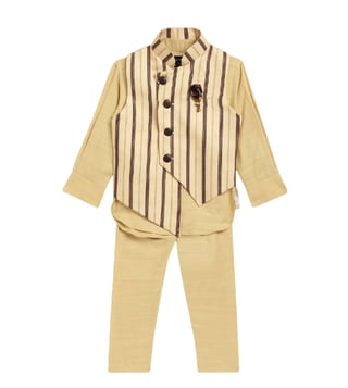 Blue Giraffe Kids Mustard Fashion Striped Regular Fit Bandi Set