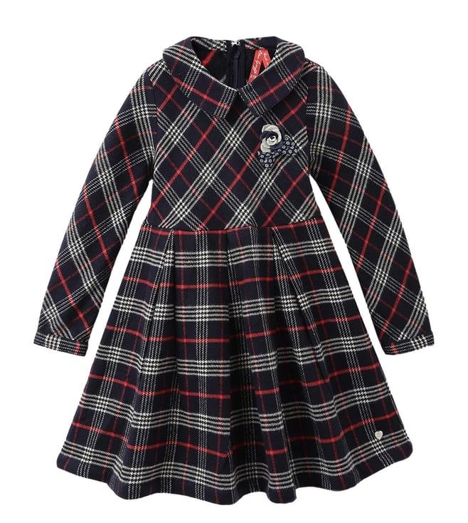 Blue Giraffe Kids Navy Checked Flared Fit Dress