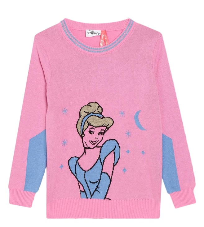 Blue Giraffe Kids Pink Printed Regular Fit Sweater
