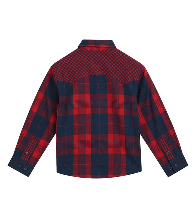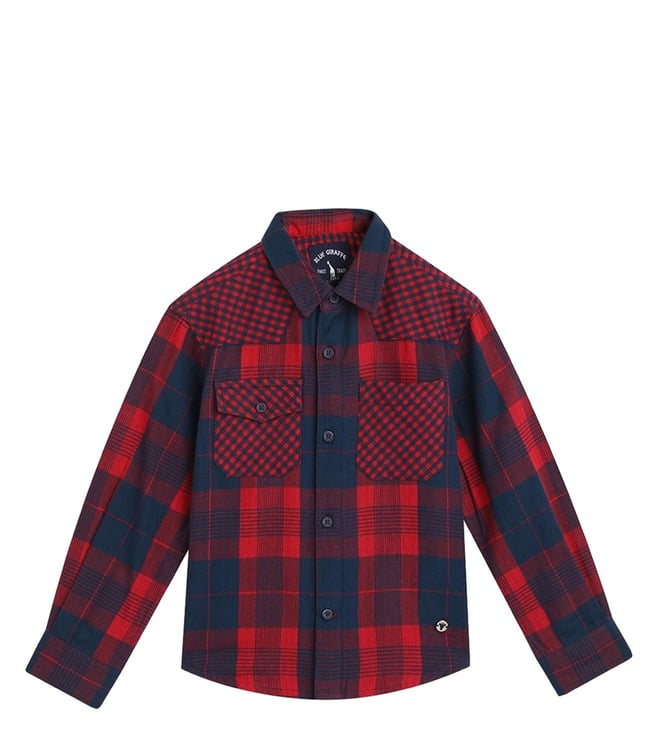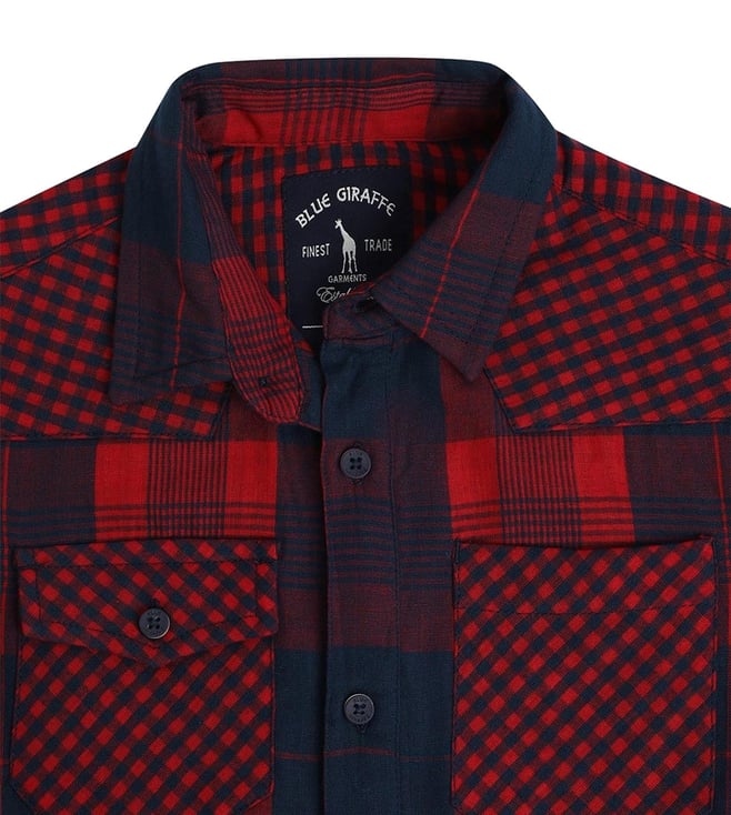 Blue Giraffe Kids Red Checked Regular Fit Shirt