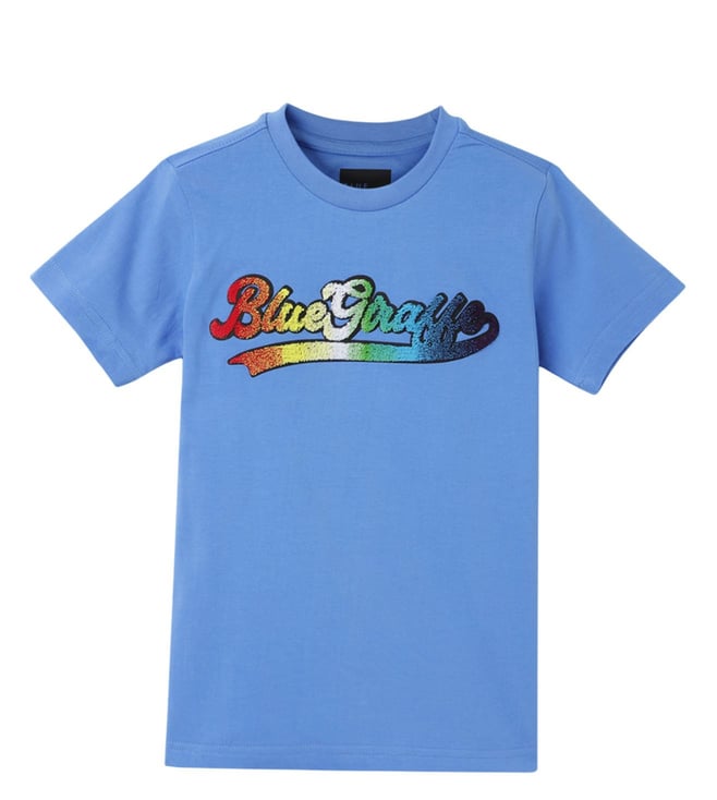Blue Giraffe Kids Sea Blue Fashion Logo Regular Fit T-Shirt