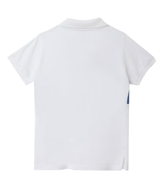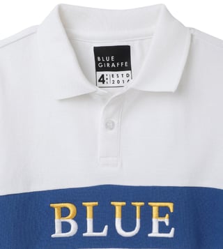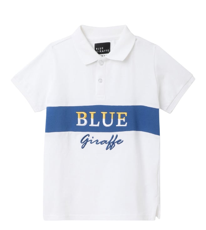Blue Giraffe Boys White & Blue Embroidered Regular Fit Polo T-Shirt