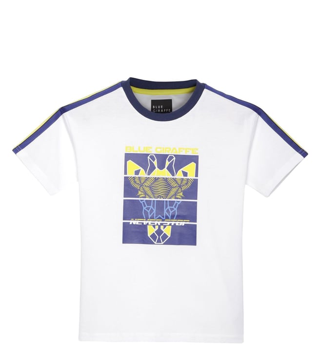 Blue Giraffe Kids White Fashion Animal Print Logo Regular Fit T-Shirt