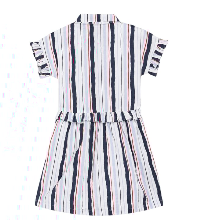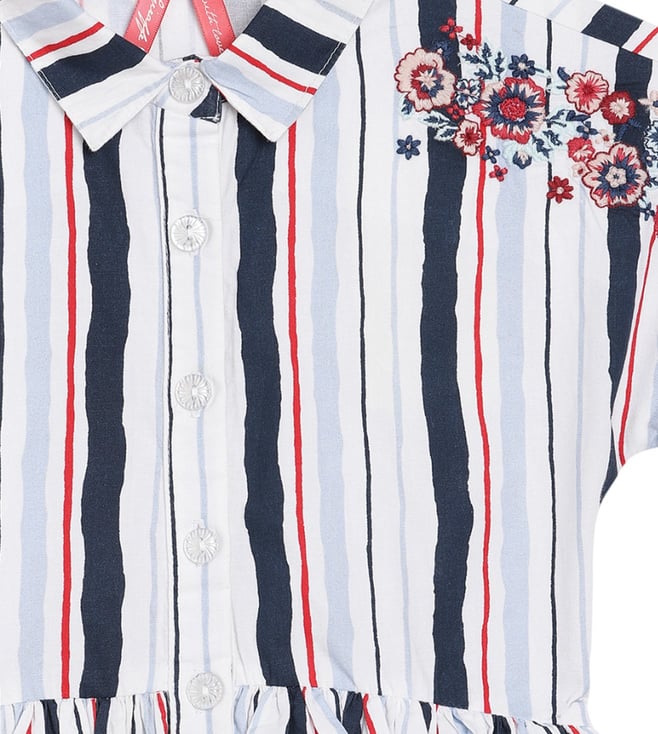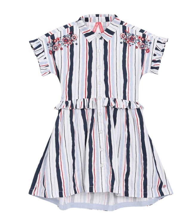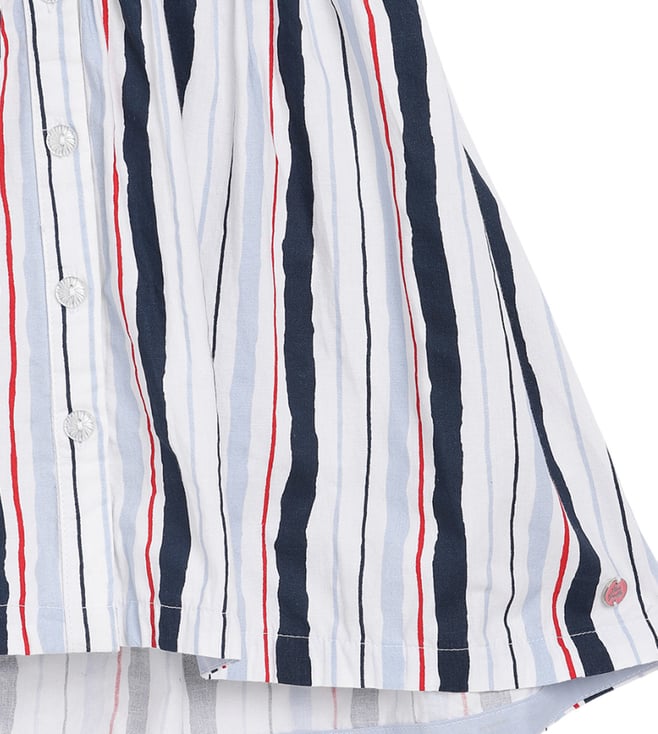 Blue Giraffe Kids White Fashion Striped Regular Fit Dress