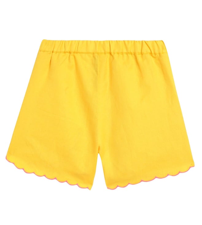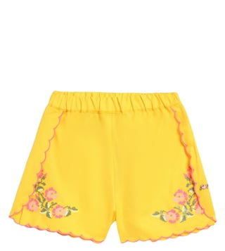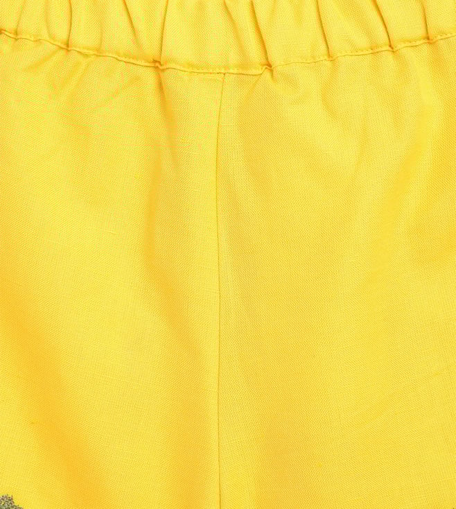 Blue Giraffe Kids Yellow Embroidered Flared Fit Shorts