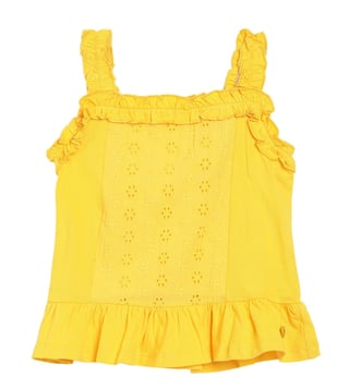 Blue Giraffe Kids Yellow Embroidered Straight Fit Top