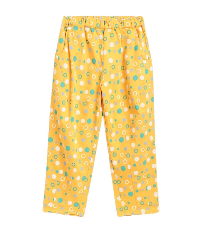 Blue Giraffe Kids Yellow Printed Loose Fit Trousers