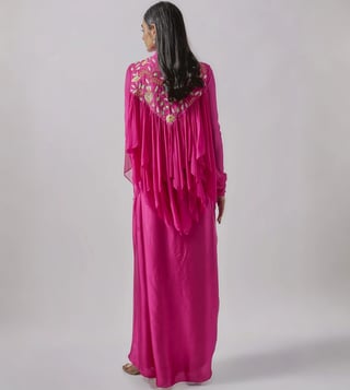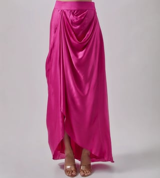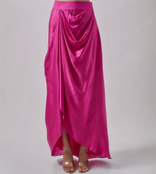 Blue Lotus Design Fuchsia Silk Skirt with Top