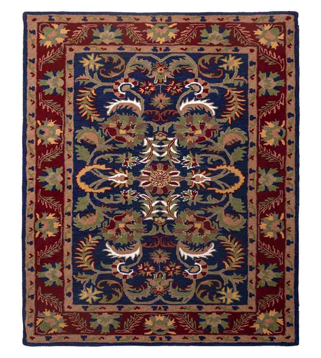 Maroon & Navy Blue Hand Knotted Rug (6X4 Feet Rectangle)