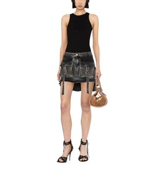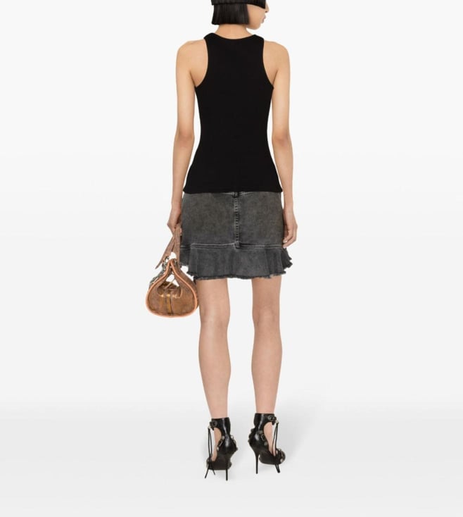 The Blumarine Black Logo Ribbed Cotton Tank Top is a chic staple for the modern wardrobe. Crafted from a blend of 95% cotton and 5% elastane, it offers a comfortable regular fit that flatters the silhouette. The ribbed texture adds a touch of sophistication, while the iconic Blumarine logo subtly adorns the design, exuding understated elegance. Perfect for versatile styling, this tank top is a must-have for women seeking both comfort and style in their everyday ensembles.